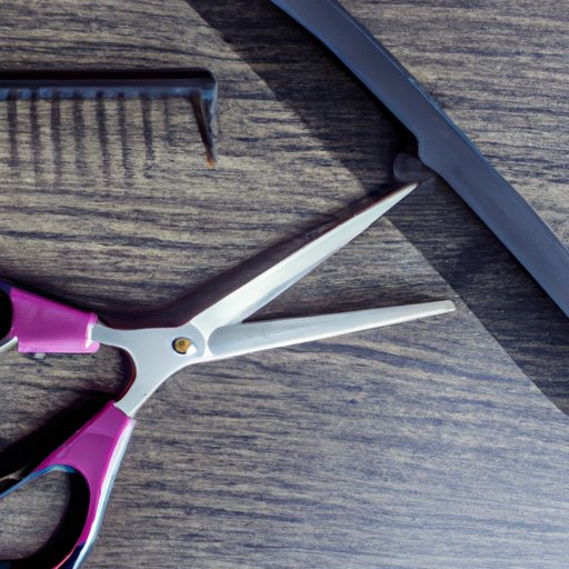 Before starting, make sure your tools are clean and sharp. Use the wide-tooth comb to detangle your hair and remove any knots. Then, use the fine-tooth comb to make clean sections. Hold the hair firmly with the comb and cut with the scissors at an angle. Be sure to cut only a small amount at a time and trim less than you think you need – you can always cut more later.